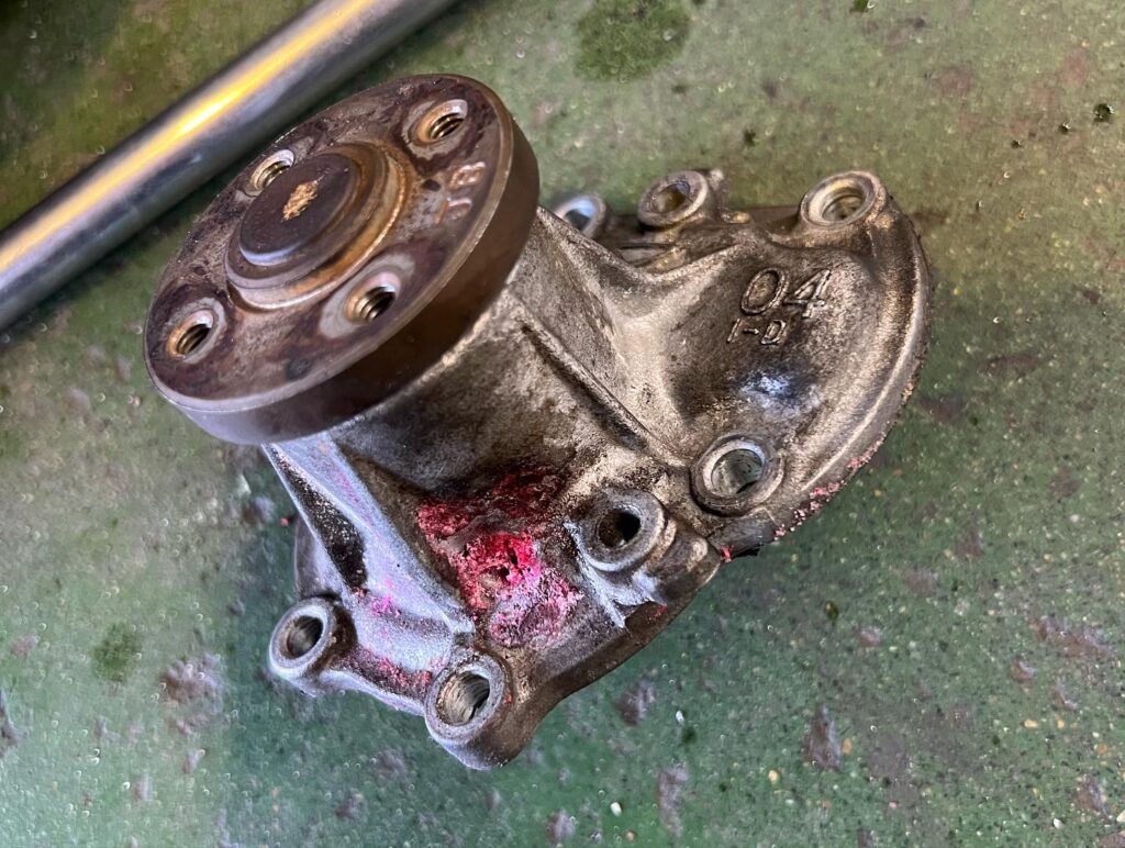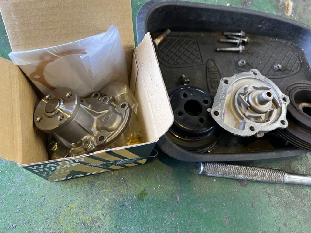 悪いことは重なるもので、今度はウォーターポンプからの冷却水漏れを発見。