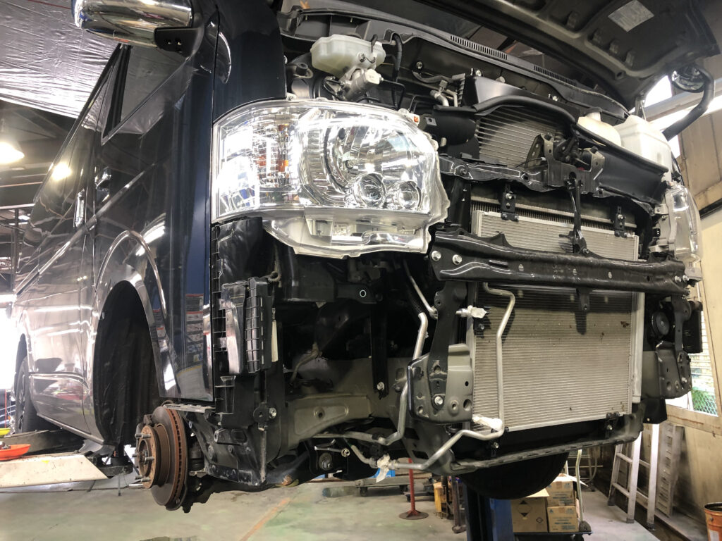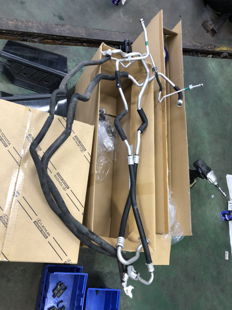 ハイエース 事故修理 エアコンパイプ交換 ロアアーム交換 保険事故